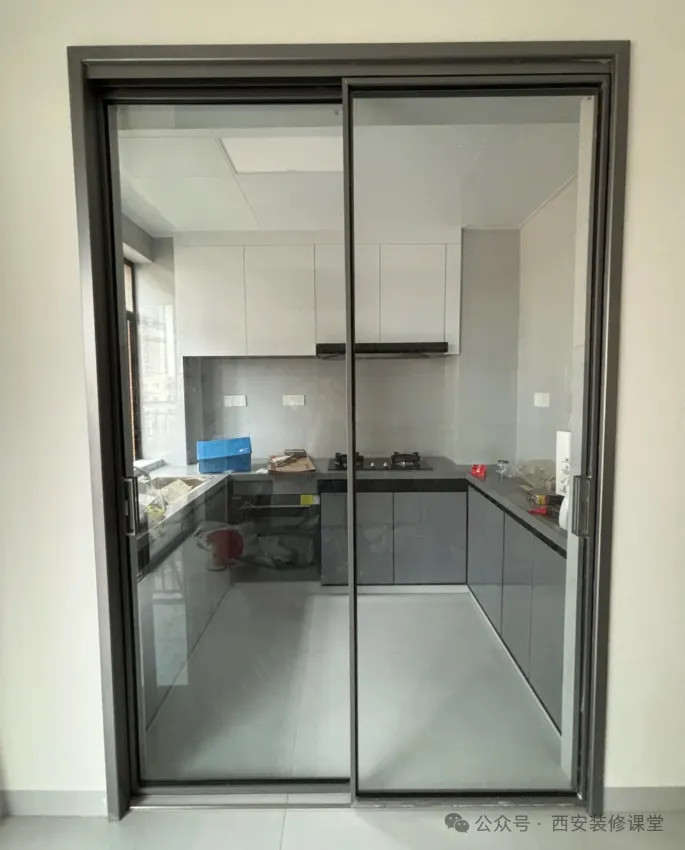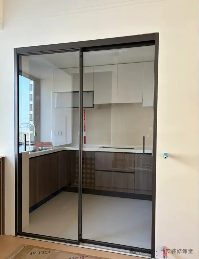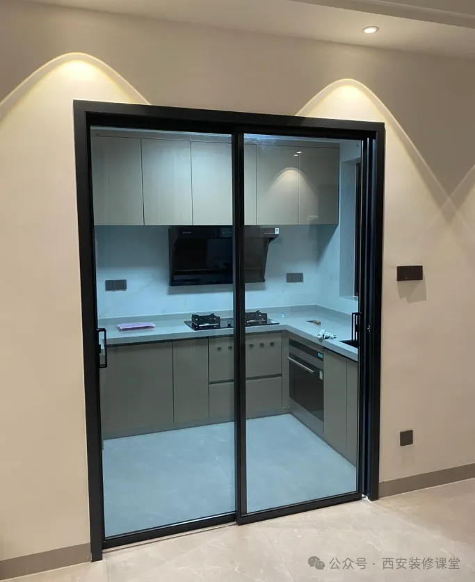 普通厨房双包套推拉门,视觉上会显得更厚重,因为有双包套还得独立付费。