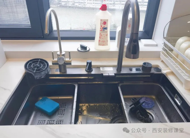 网友@亭亭玉立:再也不买这种多功能水槽了!功能多,有电机还有数显,导致水压变小了,好久才能切换到热水;数显能显示温度,但是经常坏,时好时坏,拆了一个部件,把数显功能取消了,水量也稍微大了点,真的想换了的心都有
