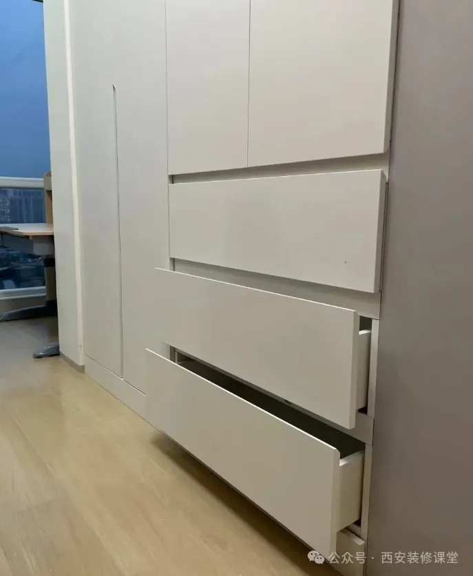 不怕丑的可以用这种拉手,最不建议的做法,定制如果只是注重了功能,就成了定制盒子了,价值打打折了。牺牲抽屉高度并不是不知道有更好的办法,多数是金钱和欲望矛盾了,妥协的做法而已。