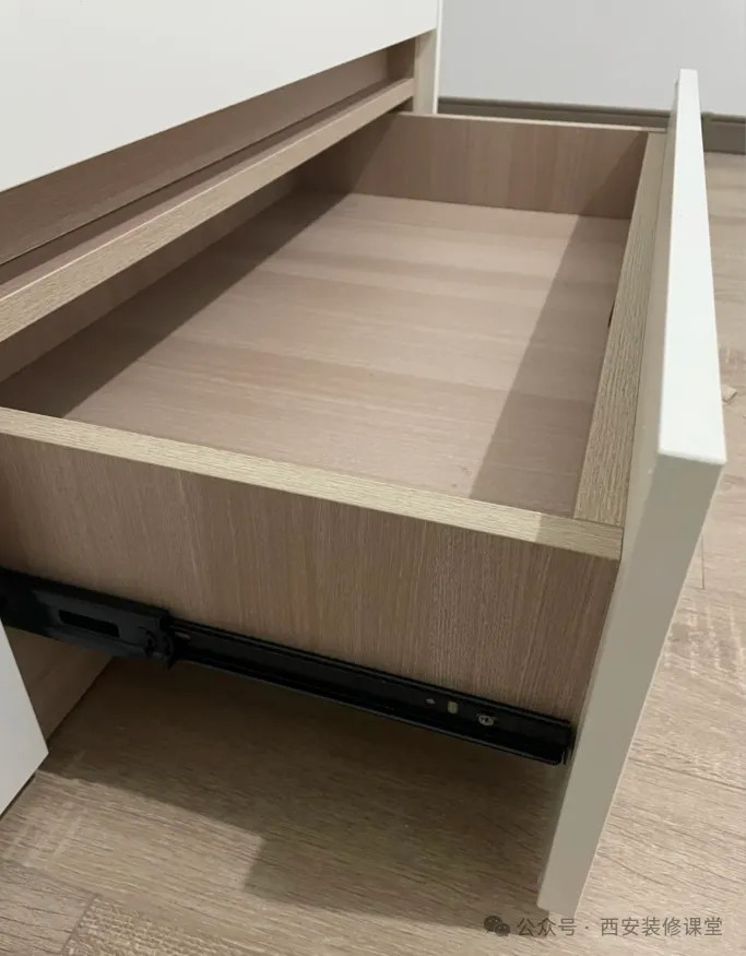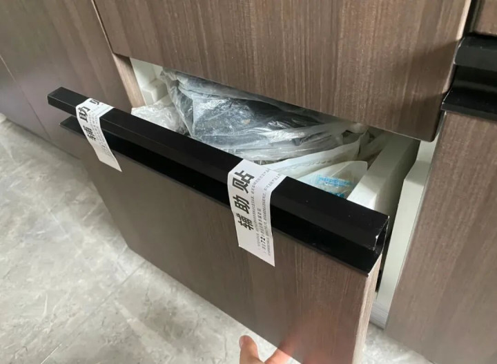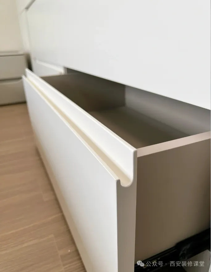 都知道普通免拉手牺牲了抽屉高度,还坚持要做,因为这个选择不加钱,其他都得加钱。