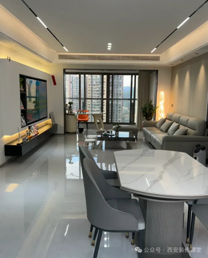 看别人家无主灯好看,自己也跟着做了,而且为了配合无主灯做了很多无用的造型,结果到最后家具和软配,实在没有多余的预算支撑。整体看来虽然做了无主灯,但是廉价和土气:因为后期家具和软配完全与无主灯的高级感不匹配,反差极大!