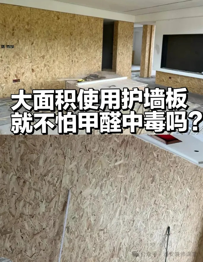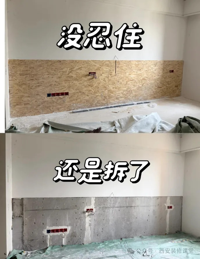网友@耐思:看到家属给卧室里头做半墙背景,天都塌了,这房子本身就是用来备孕的,采用胶水粘欧松板,上头在用胶水粘人造板,果断拆除了。